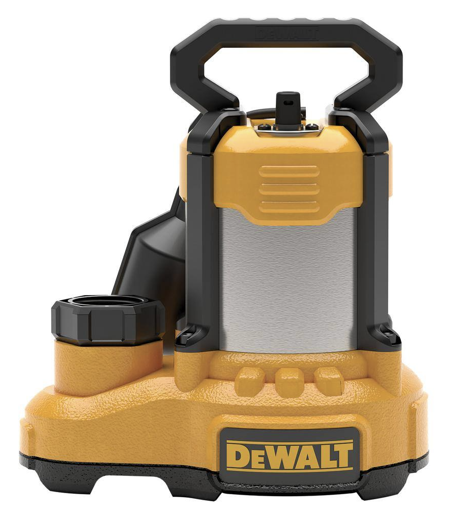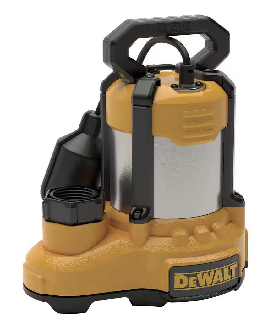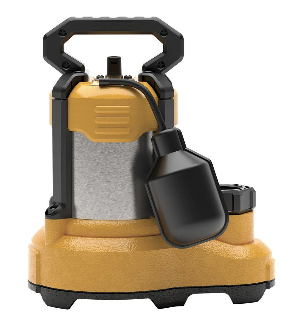 DEWALT Submersible Sump Pumps are GUARANTEED TOUGH to meet and exceed the expectations of experienced trade professionals and homeowners alike. This heavy-duty 1/3 HP sump pump will dependably remove water away from the home's sump basin. DEWALT Sump Pumps are built with the highest quality components including a durable cast iron base, corrosion-resistant stainless steel motor housing, 100% copper motor windings for a long-lasting motor, and a piggy-back vertical float switch tested to over 3 million on/off cycles. DEWALT Sump Pumps feature a 2 in. FPT discharge with a 1-1/2 in. discharge adapter included. The 1/3 HP DEWALT Sump Pump pumps up to 75 Gal. per minute / 4500 Gal. per hour and up to a maximum vertical lift of 25 ft. DEWALT Pumps are 100% factory-tested and backed by a 10-year warranty.