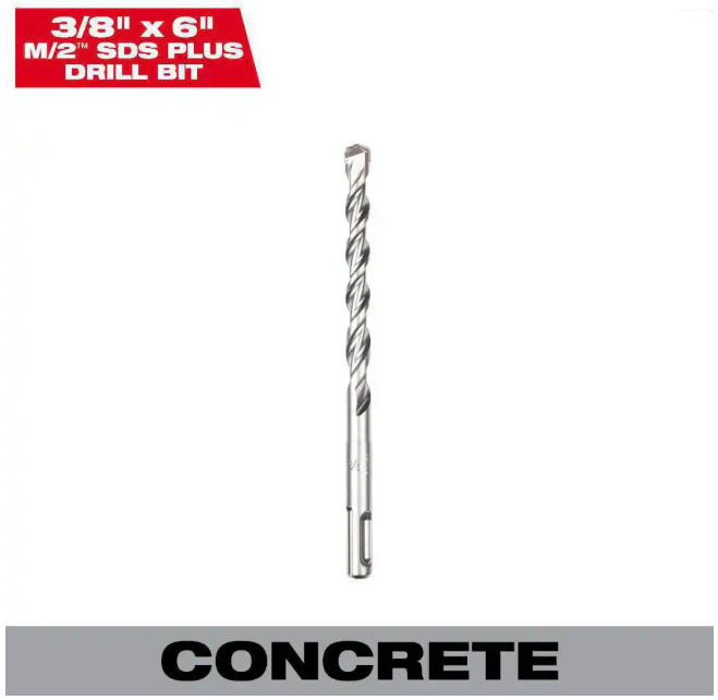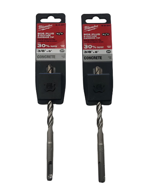 (2-Pack) Milwaukee 3/8 in. x 6 in. 2-Cutter SDS-PLUS Carbide Drill Bit
