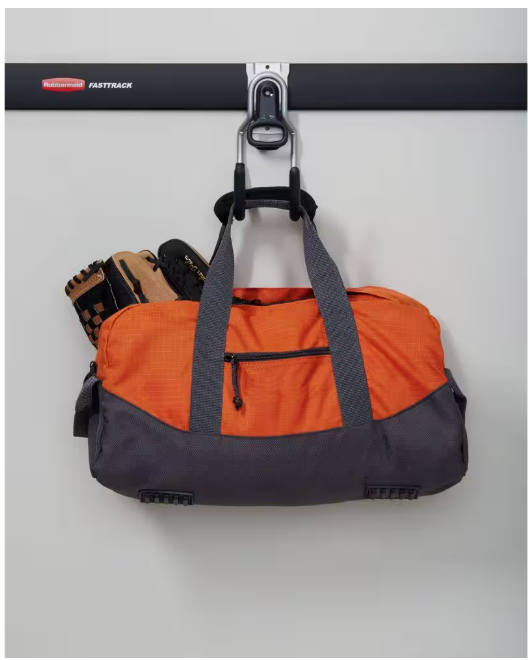 (2-Pack) Part of the FastTrack system, the Utility Hook is great for storing rope, extension cords and more. Holding up to 50 lbs., its soft grip coating protects it from nicks and scratches. It attaches quickly and easily to the FastTrack rail so you can make a customized garage storage system that can change as your storing needs change.