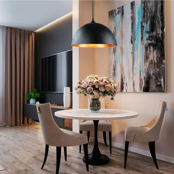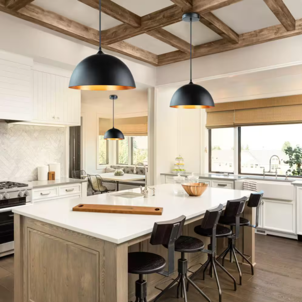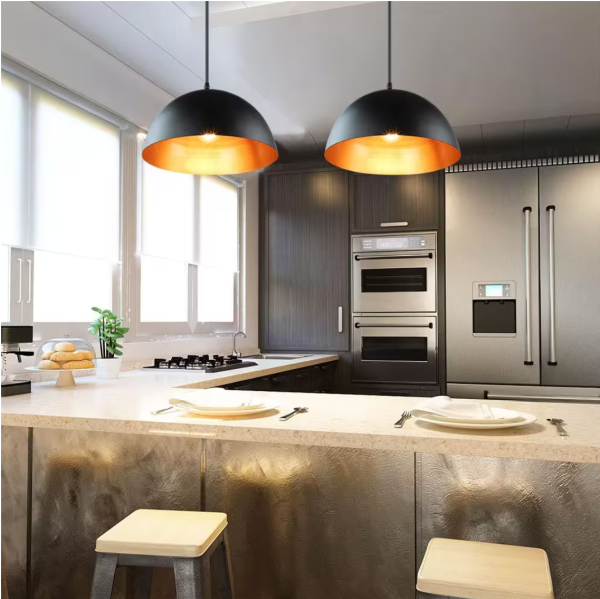 This modern industrial light features a sleek dome design for the shade that places it firmly in a timeless contemporary style. Equally chic in a row down a hallway or over a kitchen island, this pendant masterfully evokes both simplicity and glamour. In a modern matte black and brass gold finish, it is versatile enough to hang individually or arrange in a group. This includes 2 packs and it will be the perfect addition to complete the room.