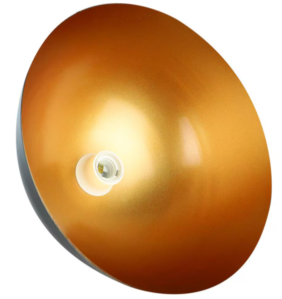 - The inside lamp shade of this pendant lamp is copper when the lamp is turned off, but orange when the lamp is turned on.