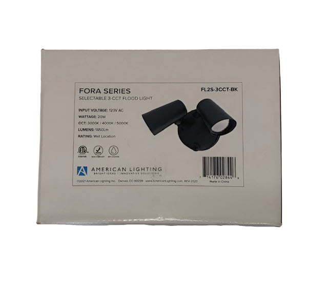 20W Fora 3CCT LED Security Flood Light - 1450 Lumens - 120V, Black