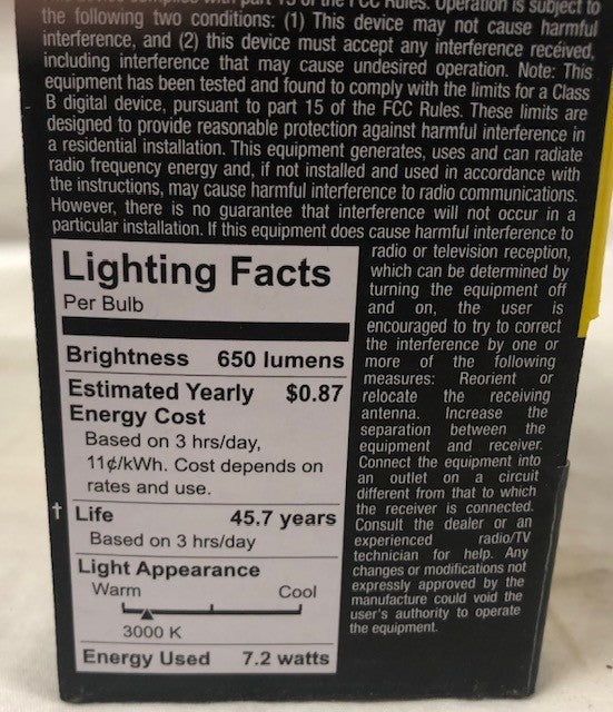 - Uses up to 89% less energy compared to a standard incandescent light bulb