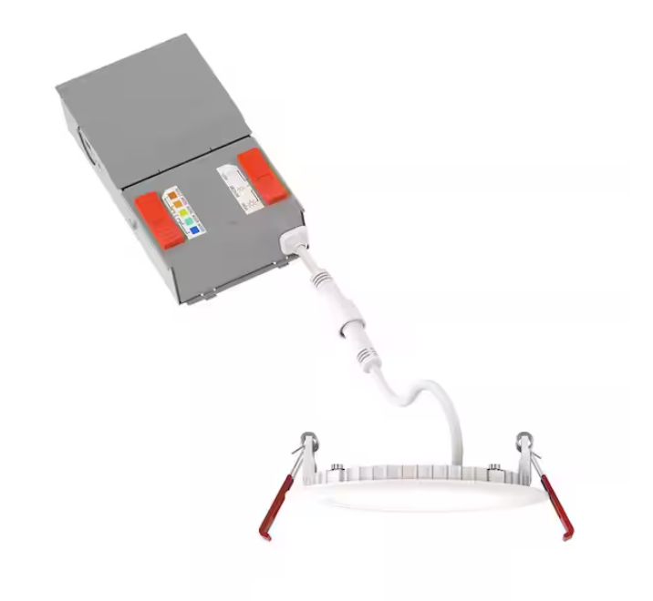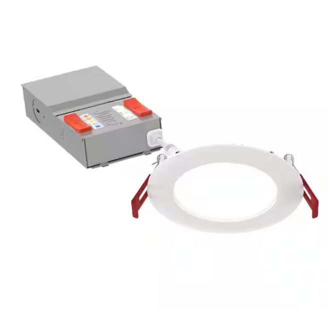 Pack of 6 - The 4 in. Can less Wafer Downlight has an innovative, slim design that installs quickly and easily into as little as 3 in. of plenum space allowing for it to fit into ceiling spaces where most traditional recessed housings do not. Wafers install directly into dry wall eliminating the need for recessed housings. Once installed, our Wafer provides an All In One design featuring switchable white color temperature and adjustable lumen output technology. This technology gives the ultimate in flexibility, providing you the equivalent of 15 static products in 1.