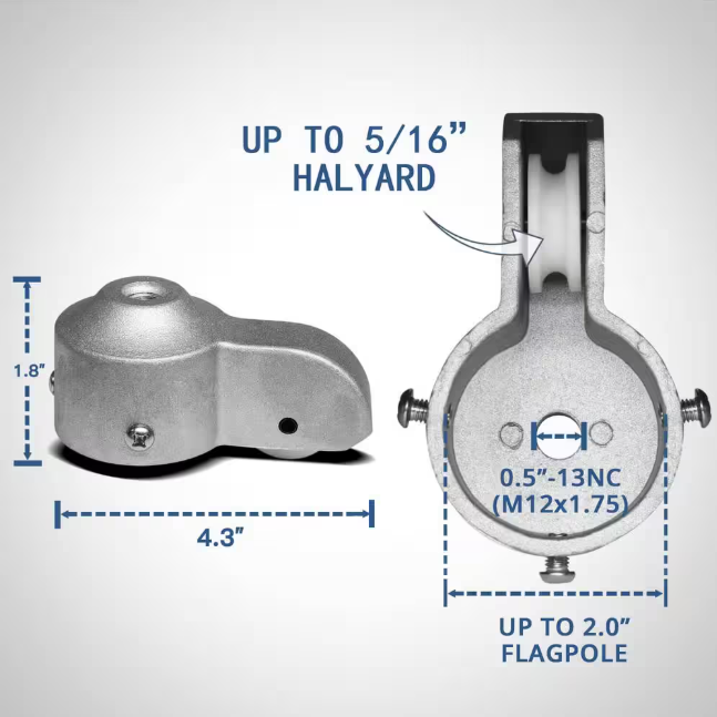 - FIT ALL STANDARD FLAGPOLES - Truck is secured to pole with 3 stainless inset screws. Designed to mount any flagpole that diameter ranges from 1.5" to 2".