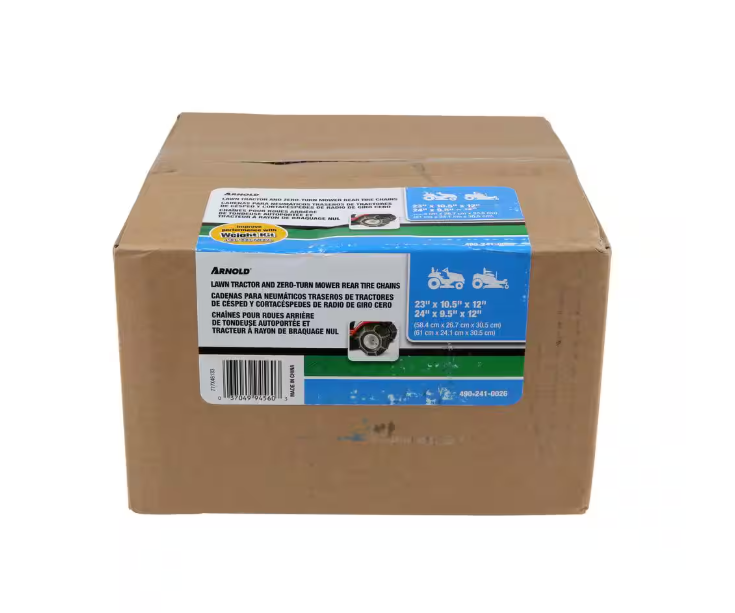 Keep your tractor working through cold winter months with these Arnold Tractor Tire Chains for 23 in. x 10-1/2 in. x 12 in. Wheels. Designed to provide superior traction, these chains hold up in slippery and soggy conditions. Made from durable stainless steel, they stay strong year after year. The chains fit most all tractor brands.