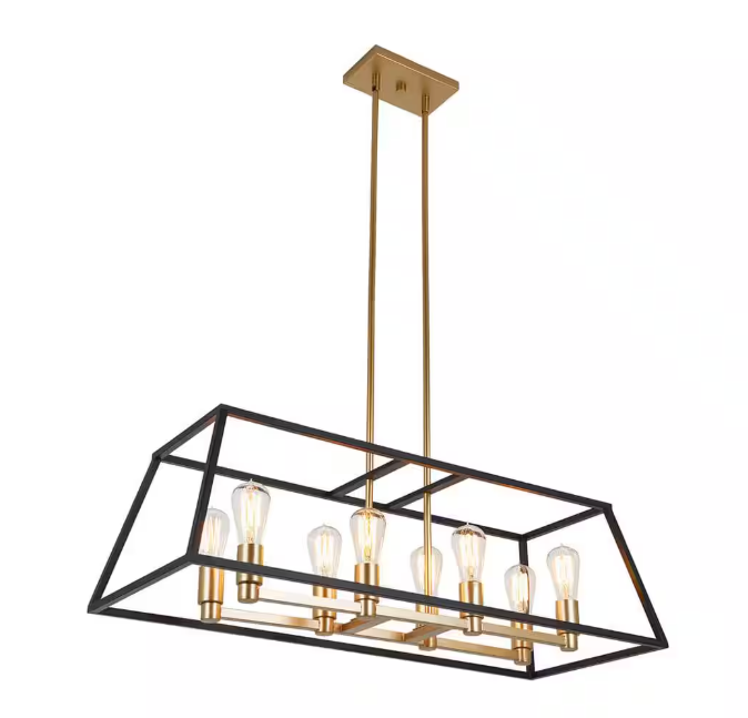 Artika Carter 8-Light Black and Gold Modern Industrial Cage Chandelier Light Fixture for Dining Room or Kitchen