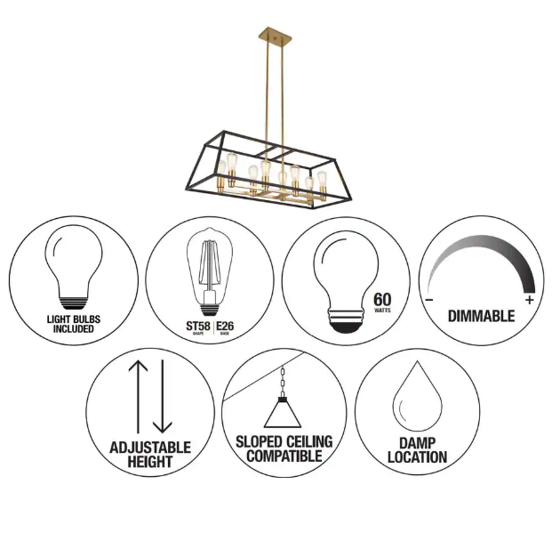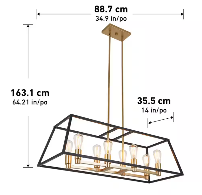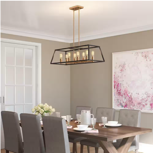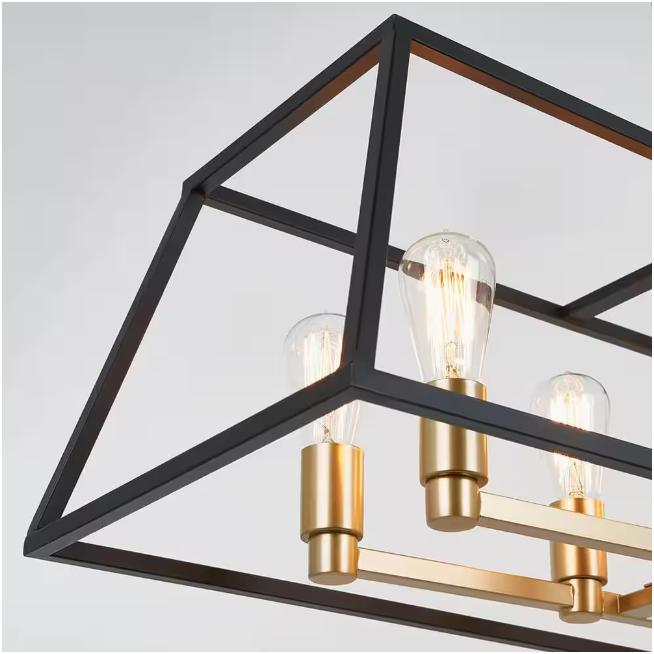 Give yourself the best of both worlds with Artika's Carter 8 light geometric industrial chandelier. The intelligent conception of this chandelier combines a minimalistic and industrial design with a glamorous and classic appeal. This large rectangular industrial chandelier features aesthetic angles and skillfully pairs with various contemporary interiors. The Carter industrial chandelier also allows you to deftly integrate the black matte finish and the brass accents of its steel frame with its incandescent lights. This exceptional lighting fixture can adapt to any atmosphere. Treat yourself to this versatile model and see how quickly it becomes a centerpiece within your home.