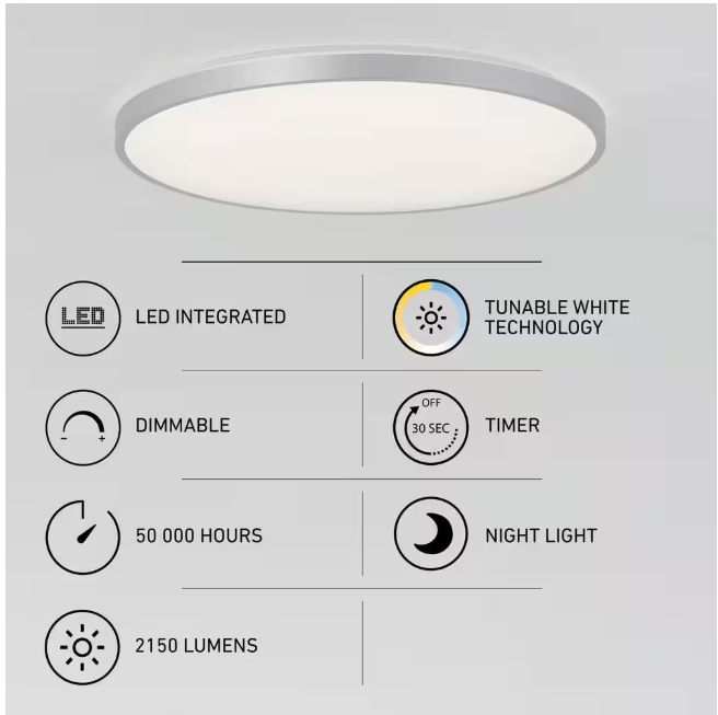 - 30 Watt and Last 50,000 hours no light bulbs required