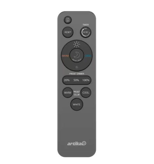 - Remote control functions: 30-second timer off, night light preset, 3-levels dimmer preset, 3-color changing presets