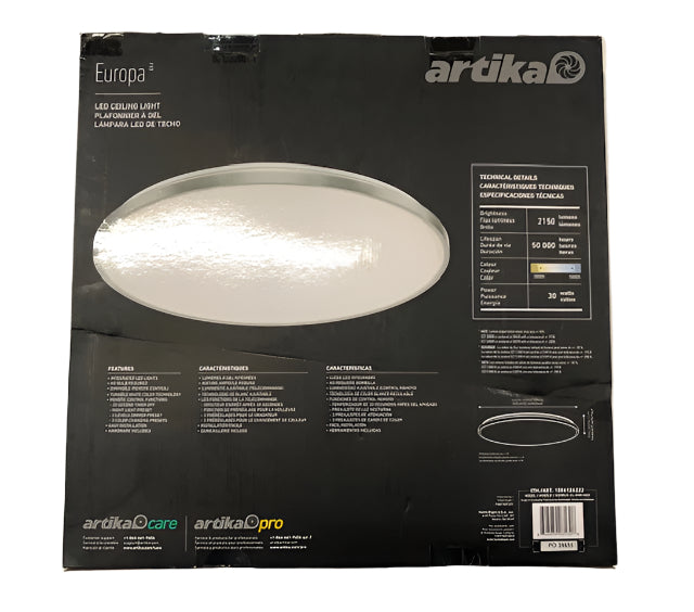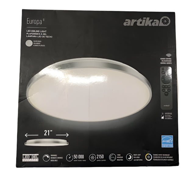Experience the ability to transform your home with Artika's Europa Flush Mount Ceiling Light. Customize the comfort and ambiance of your home to better focus on your activities. From your ideal afternoon gather to perfect lighting levels for offices, bathrooms, hallways, and stairs, control your LED ceiling light with a remote control. The Europa modern flush mount ceiling light is the light that does it all.