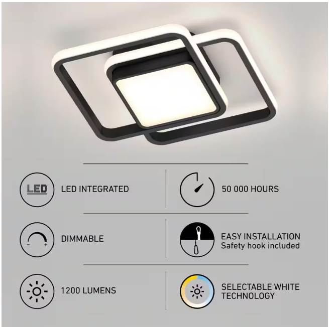 Artika Romeson 11 in. 1 Light Black 5CCT Integrated Selectable LED Flush Mount Ceiling Light