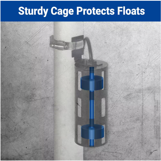 The Basement Watchdog Universal Dual Float Switch and Controller is the most reliable float switch in the industry. It will activate your primary sump pump when rising water lifts either float by 1/4 in. The float switch has not one but two large floats both in a protective cage. Should one float fail to activate the pump, the second float will automatically takeover. Once the float drops to the original position, the controller will keep the pump running for an additional 10 seconds to completely drain the sump pit. The protective cage prevents debris or other wires from interfering with the floats. The Basement Watchdog Dual Float Switch and Controller is easy to install and can be adjusted to activate at any level. This universal switch can be used with most existing sump pumps.