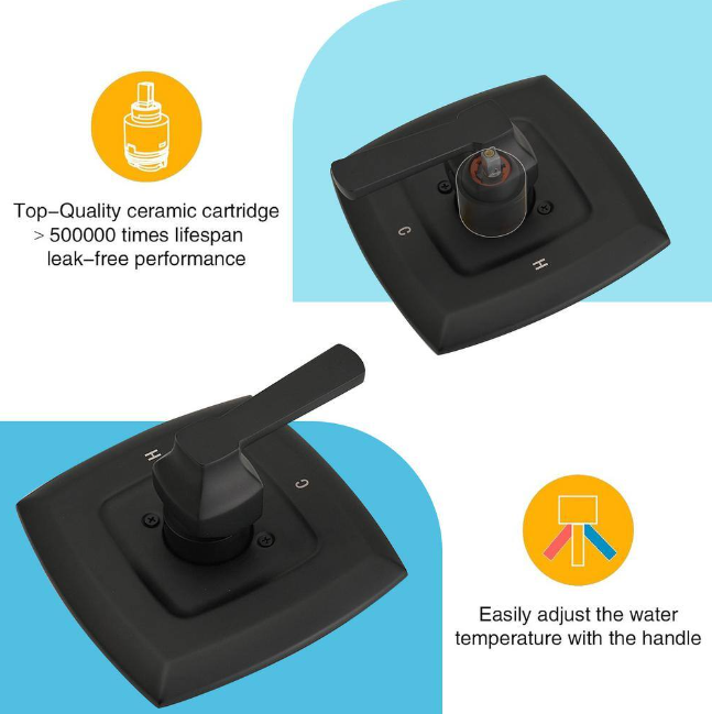 The sleek and simple appearance of the BWE black shower faucet - a fresh design that will bring life to any bathroom. The ceramic disk cartridge brings you a faucet built to last up to 600,000 uses. Easy operated lever handle, 10 inches touch-clean rain shower and matte black finish give this matte black shower fixtures universal appeal.