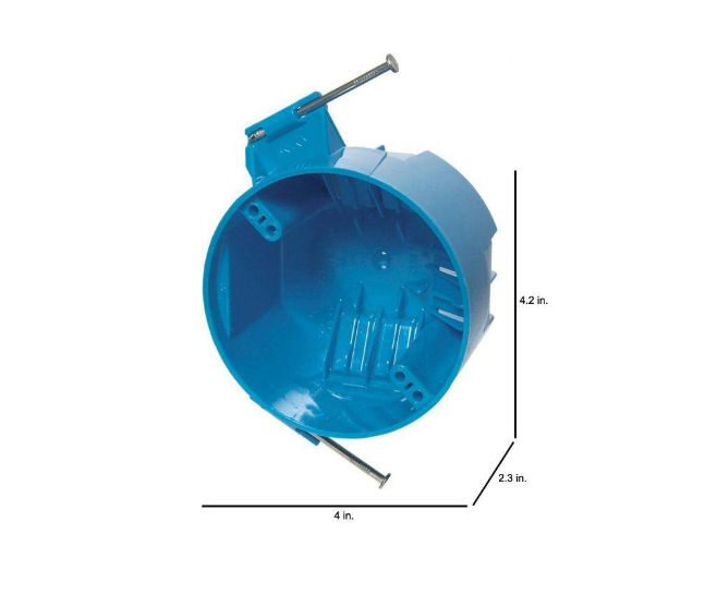 The Carlon Zip Box Blue 1-Gang 20 cu. in. Non-Metallic Ceiling Box is designed for use with non-metallic sheathed cable in accordance with Article 314 of the National Electric Code. Great for residential and light commercial applications, the box is made with polycarbonate, is listed for use with masonry walls and can be used with 90° C-conductors. It meets NEMA OS-2 and is fire rated and UL Listed for safety.