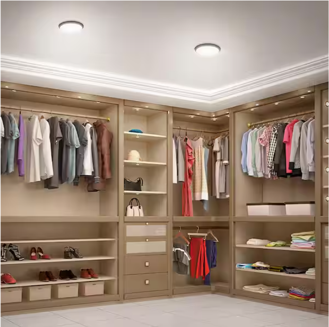 Get the right light for any situation or task with the Commercial Electric 11 in. Dimmable Selectable CCT Integrated LED Flush Mount Ceiling Light Matte Black. This 11 in. decorative ultra slim stylish ceiling flush mount light fixture creates a sleek silhouette, in a nickel tone trim and a frosted plastic lens, an ideal fixture for lower ceilings with no bulbs to replace. With our selectable color switch, you can preset your preferred light color temperature: soft white, neutral white, bright white, daylight or daylight deluxe (3000K/3500K/4000K/5000K/6500K) or set it to switch, for an easy toggle between color temperatures with a simple flip of a standard light switch. With multiple light color temperatures to choose from, along with full range dimming (with a compatible dimmer), your lighting can suit your mood. This LED ceiling light is equipped with a motion detector sensor for instant light activated by motion, a hands-free way to light up a space as you walk by. Once the source of motion is cleared, light will wait 5-minutes until turning off. The selectable switch can be preset up to a 15 ft. distance or off and the light can be used as a standard switch light. The streamlined design of these LED flat panels combined with patent pending easy-to install mounting brackets enables simple installation in both residential and commercial buildings. This easy to install light fixture has an average life of 50,000-hours/45.7-years.