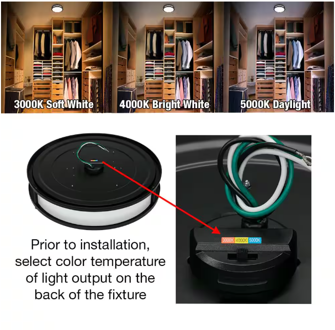 - COLOR TEMPERATURE OPTIONS: 3000K Soft White, 4000K Bright White or 5000K Daylight