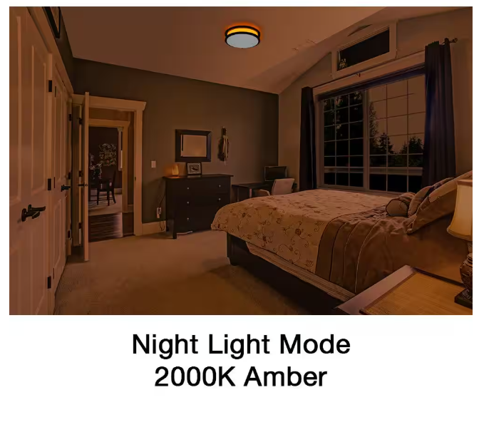 - NIGHT LIGHT MODE: Integrated 2000K soft Amber night light glows around fixture - Ideal for ambient lighting