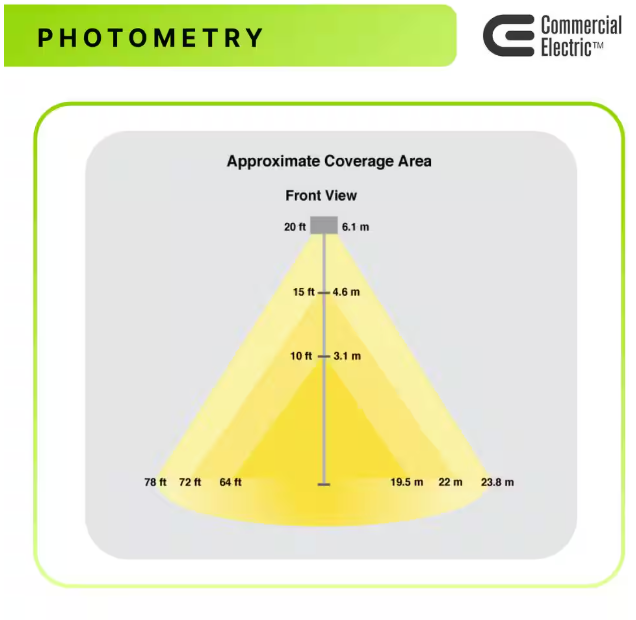 This energy-efficient LED area or flood light will saturate a 30 ft. x 30 ft. outdoor space with 3300 Lumens of 4000K bright white light using only 29-Watt. Installation is easy and safe - you'll never have to make electrical connections while holding the fixture. Mount the rust-proof polycarbonate housing on a wall or post and let the dual-control, dusk to dawn photocell technology turn the light on and off automatically for more than 50,000 hours of maintenance-free use. The LED uses 85% less energy than a standard bulb, adding up to significant annual savings on your utility bills long beyond Commercial Electric's 5-year warranty.
