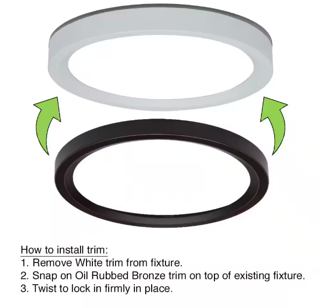 - HOW TO REPLACE TRIM: Remove trim from fixture, align the side slots of trim to the fixture, push and rotate fixture in opposite direction to lock into place