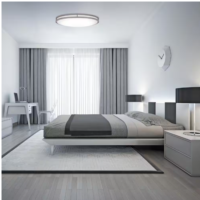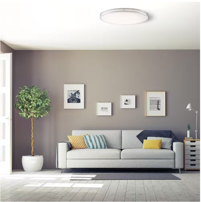 Commercial Electric Commercial Electric 32 in. Modern Brushed Nickel Dimmable Integrated LED Flush Mount Ceiling Light