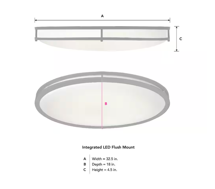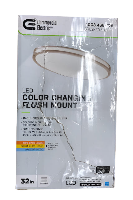 The DC series 32 in. Selectable CCT Oval LED Flush Mount is available in a timeless Brushed Nickel finish and a durable white PMMA shade. With all necessary hardware included, this Flush Mount light is easy to install in any dry or damp indoor area of your home. Enjoy a bright 3200 Lumens of light, while only using 40-Watt of power. Select between 3000K (soft white), 4000K (daylight) or 5000K (bright white) light to illuminate your space. The integrated LED, rated for up to 50,000-hours of use, means you'll never have to replace a bulb. For additional peace of mind, the DC series boasts a 5-year manufacturer warranty.