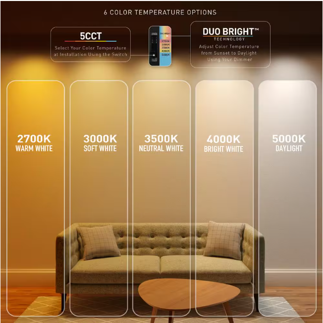 - IDEAL LIGHTING: chose between 5 different lighting color temperatures or DuoBright color temperature dimming for ideal light at any time of day - choose between 2700K, 3000K, 3500K, 4000K, or 5000K