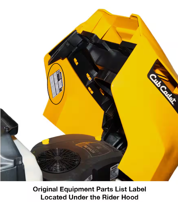 - Refer to the Parts list label under the rider hood or under the zero-turn seat mounting bracket for original equipment parts.