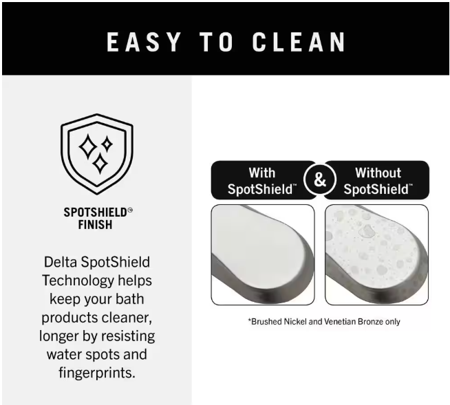 - KEEP IT CLEAN: spotshield technology keeps hardware cleaner for longer by resisting water spots, fingerprints, and stains