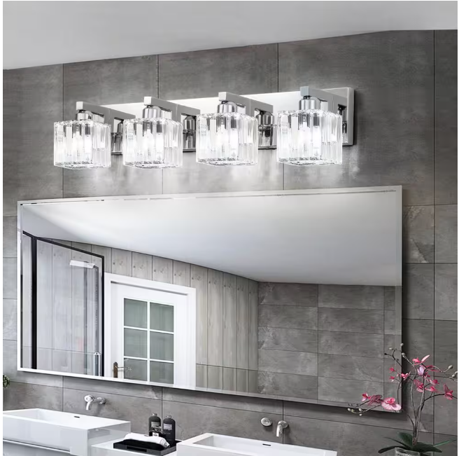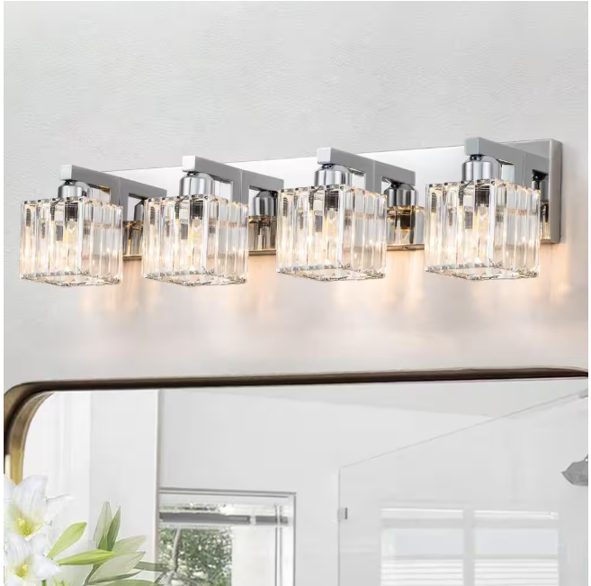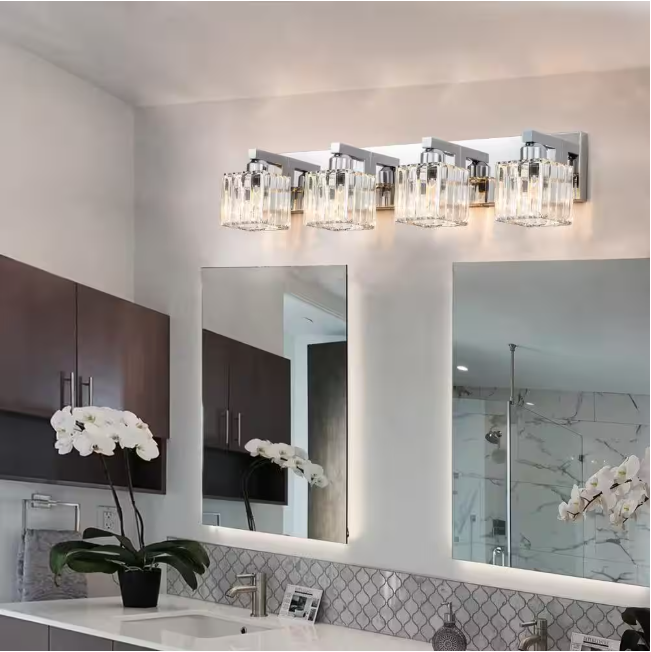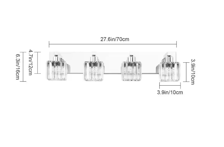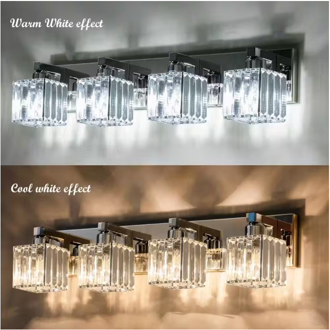 This crystal vanity light for the bathroom combines a unique Square Lampshade with modern crystal, and looks elegant and exquisite. It is perfect for your bathroom, living room, bedroom bedside, and entryway. Not only a simple vanity lighting but also a good decoration for your home.