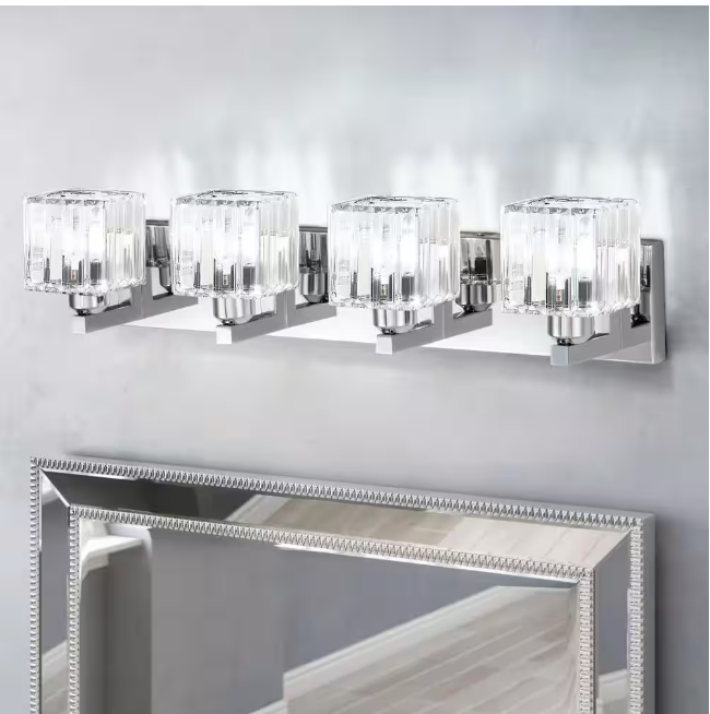 EDISLIVE Orillia 27.5 in. 4-Light Chrome Bathroom Vanity Light with Crystal Shades