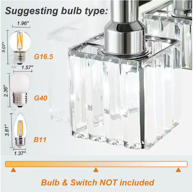 - Recommended bulb type: G40 bulb (1.57 in. * 2.36 in. ) or G16.5 bulb (1.96 in. * 3.07 in. )