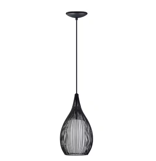 Elegantly hanging from your ceiling, the Eglo Razoni Pendant with its Black Metal Cast Cage like Shade surrounding Opal Satin Glass brings a lovely bohemian appeal to your living space. The hanging fixture has a metal cast cage-like bars that surround a white glass. The tear shaped design will give distinct look like no other.