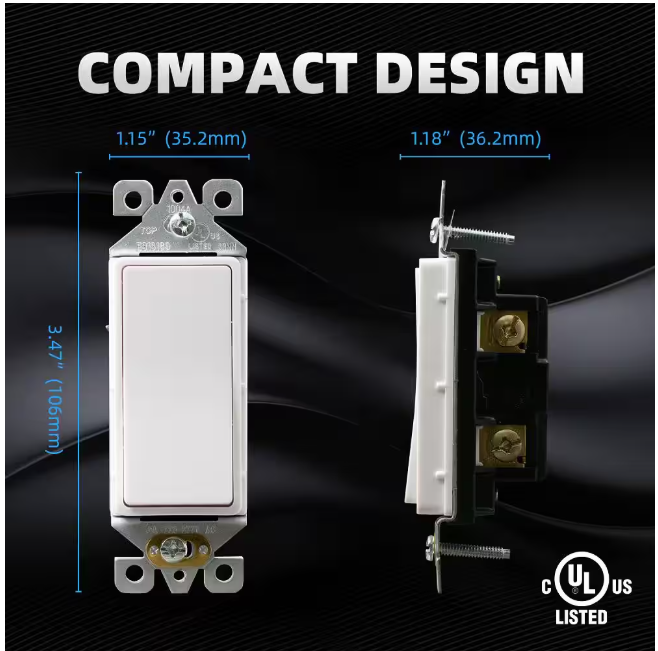 - Universal application - suitable for residential use and most commercial areas that require only 15A switches