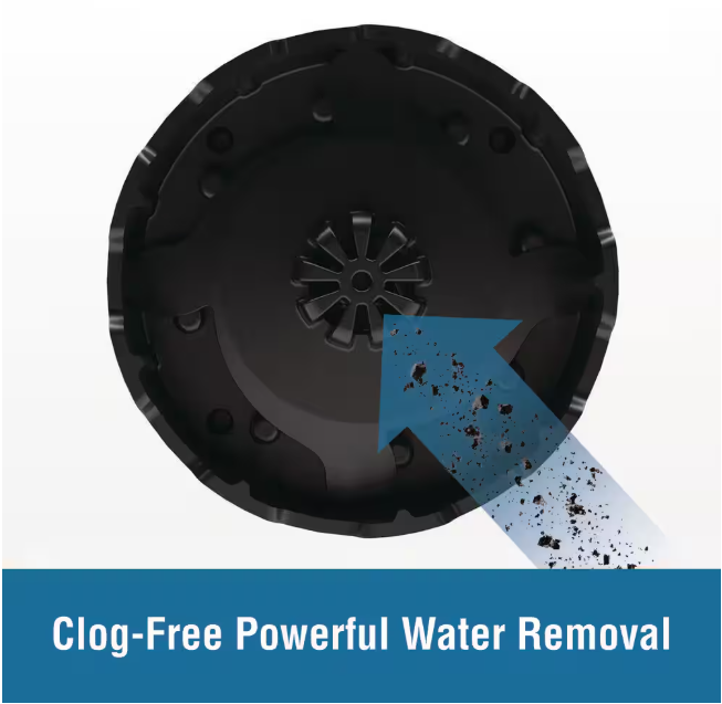 - Fully submersible utility multi-purpose water transfer/removal pump, with bottom suction design, and serviceable intake screen, removes water fast, down to 1/2 in. of surface and passes up to 1/8 in. solids, to minimize clogging