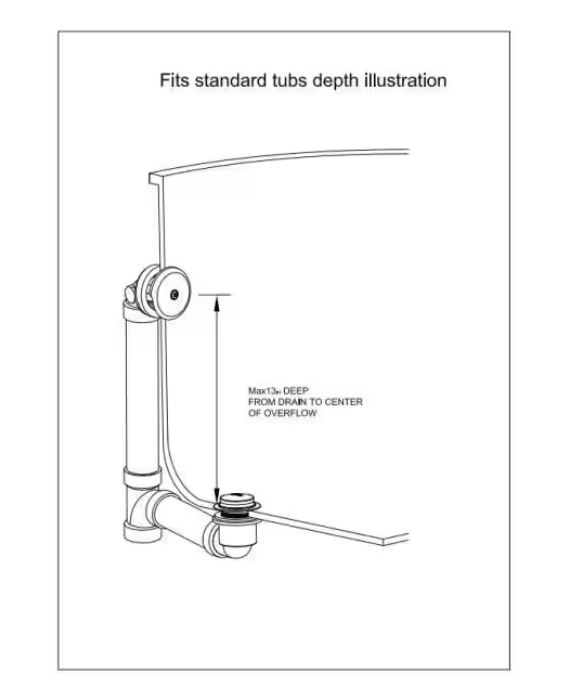 - Fits standard tubs Max 13 in. deep from drain to center of overflow