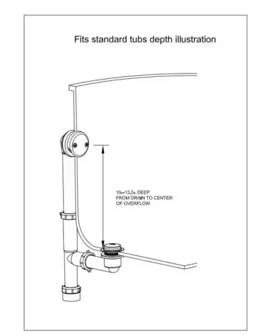 - Fits standard tubs 10 in. - 13.5 in. deep from drain to center of overflow