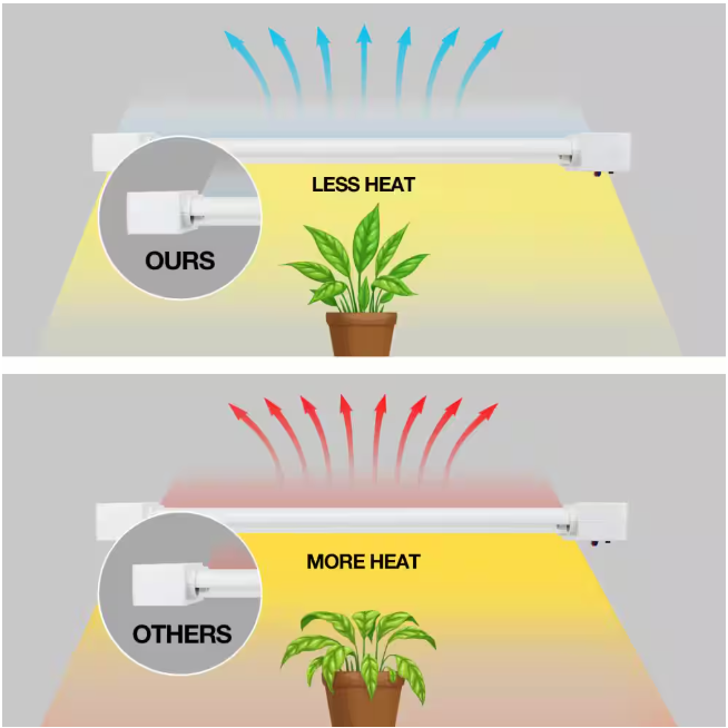 - Emits spectrum wavelengths and color for superior photosynthetic response