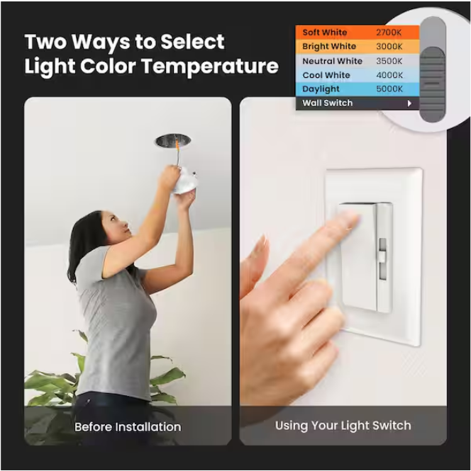 Feit Electric 5 or 6 in. 925 Lumens Selectable 5CCT Dimmable Integrated LED Retrofit Recessed Light Baffle Trim, White 6-Pack