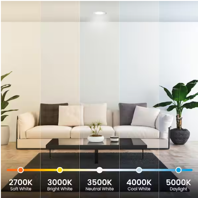 - Color selectable light appearance: 2700K/3000K/3500K/4000K/5000K (soft white/bright white/neutral white/cool white/daylight)
