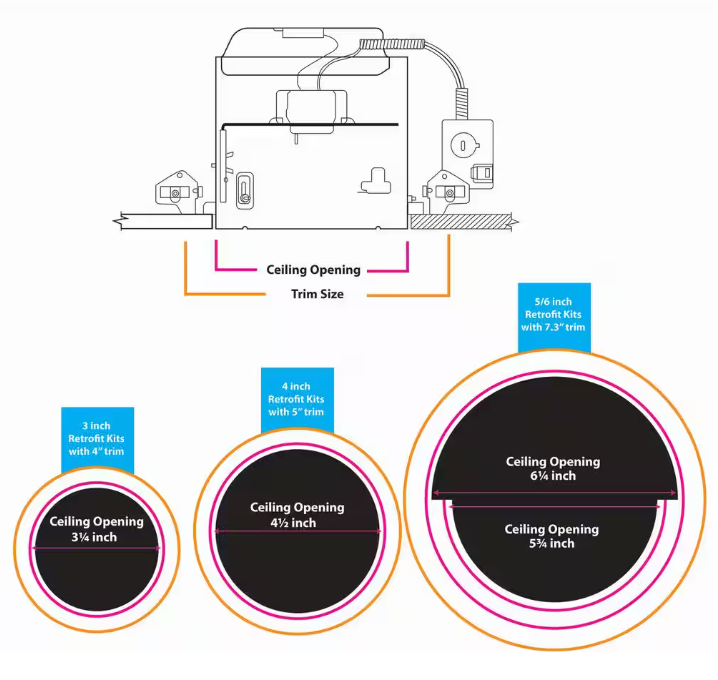 - Included one 5 inch or 6 inch recessed light trim kits