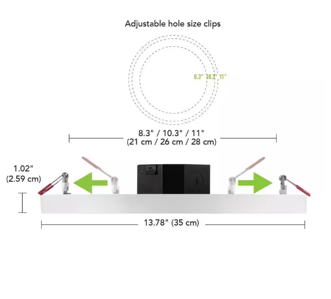 - Adjustable hole size: with different hole sizes to choose from, installation is flexible and easy, choose from 8.3 in., 10.3 in., or 11 in. for easy installation