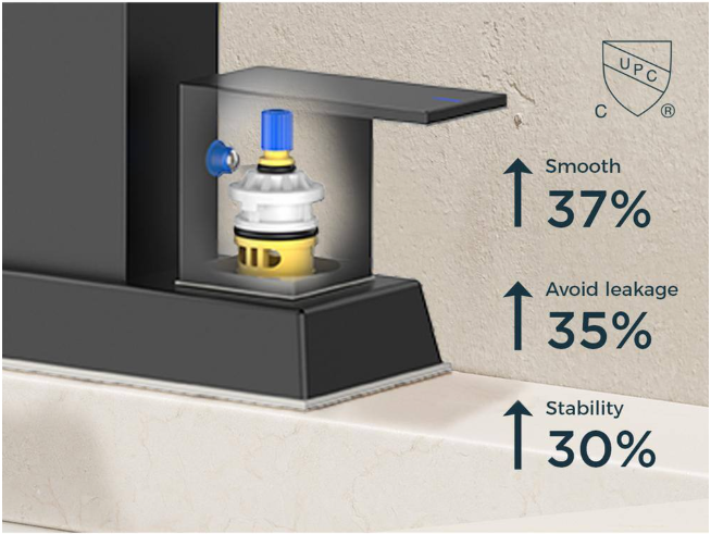 - Lead-free materials and high-quality ceramic disc valve cartridge, drip-free use all the years.