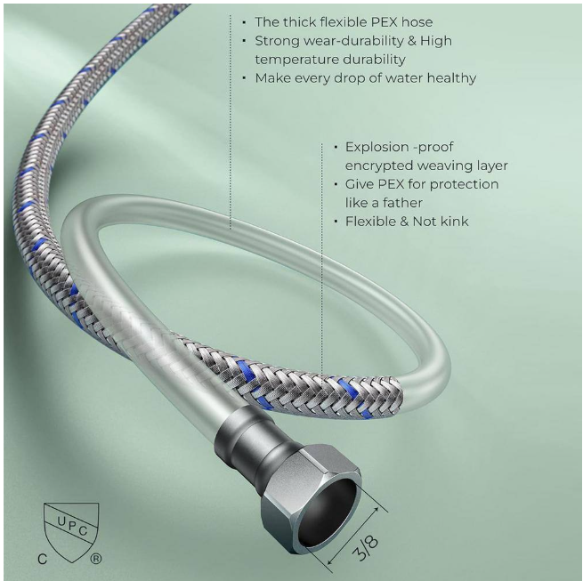 - 3/8 thread designed for use with standard U.S. plumbing connections, built-in rubber ring effectively avoids water leakage.