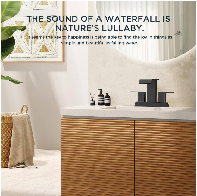 Bathroom Waterfall faucet will upgrade your bathroom by combining an elegant low arc design with an understated color scheme. With sturdy PEX water supply pipes and high quality ceramic valve cartridges, which makes the faucet more heat and wear resistant and guarantees no leakage for years to come. Low-arc Waterfall spout design and smooth finish, not easy to leave unsightly fingerprints and water stains, add elegance to your bathroom. Featuring a contemporary design, this faucet merges visual appeal with efficient operation, keeping your space both clean and sophisticated.