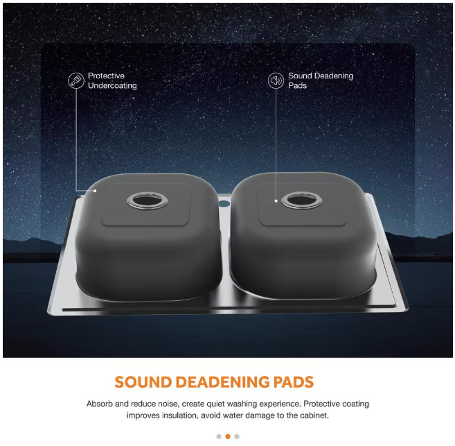 - Features a full undercoating to prevent condensation and drastically reduce noise caused by dishes, running water, or garbage disposal vibration