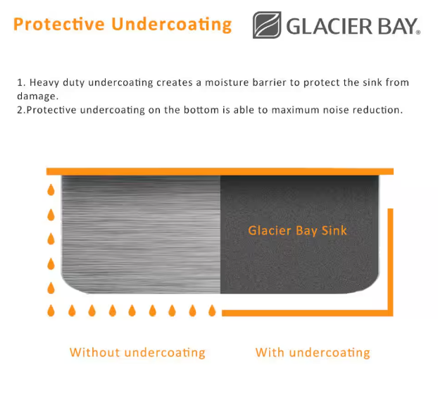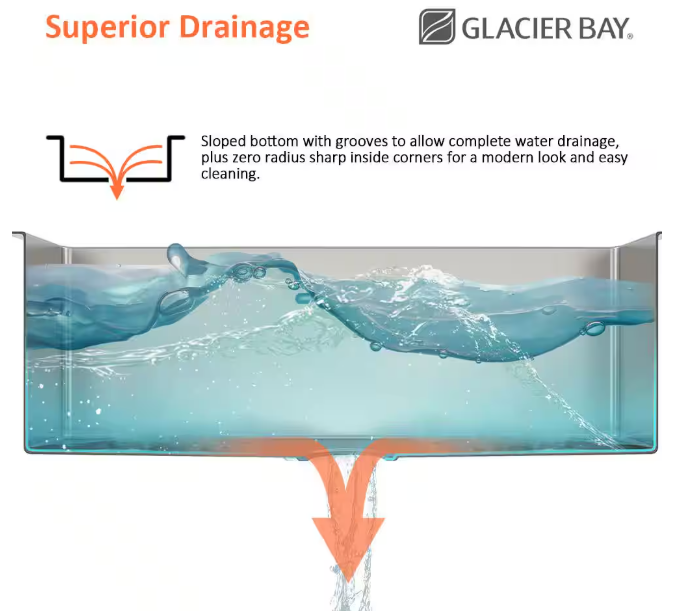 If you enjoy cooking like a professional chef, the Glacier Bay Workstation Sink for you. This Apron-Front Farmhouse Sink features an extra-large bowl that is generously sized for any food preparation or clean up that you could undertake in your kitchen, and the kit includes a custom cutting board, colander and roll-mat, all designed to fit the workstation ledge. Each model is handcrafted from high quality, virgin 304 18-8 heavy gauge stainless steel, and is sound insulated with noise absorbing pads plus under-spray coating.