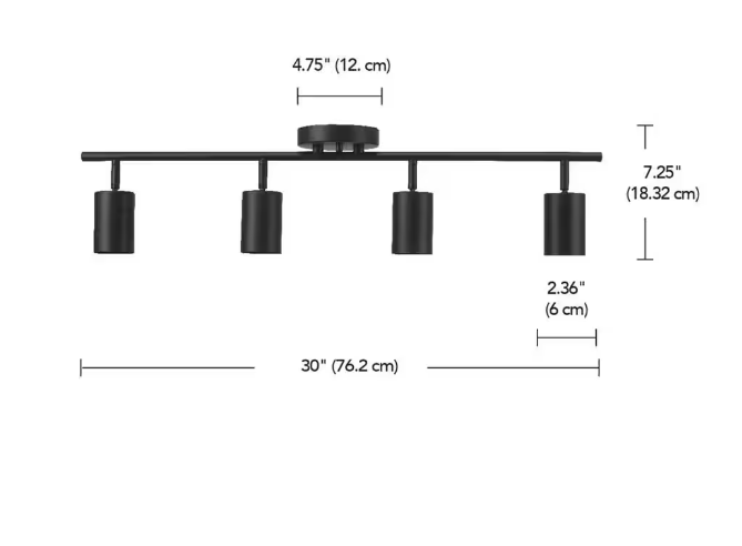With four cylindrical track heads that protrude from a slender track bar which sits on the ceiling with a matte black canopy, the 30" 4-Light Track Light becomes the ideal way to illuminate your home. The matte black color accents any decor while the slim, streamlined profile is great for placement. It's perfect for bringing a little glam into your bedroom, living room, kitchen, hallway, or den.