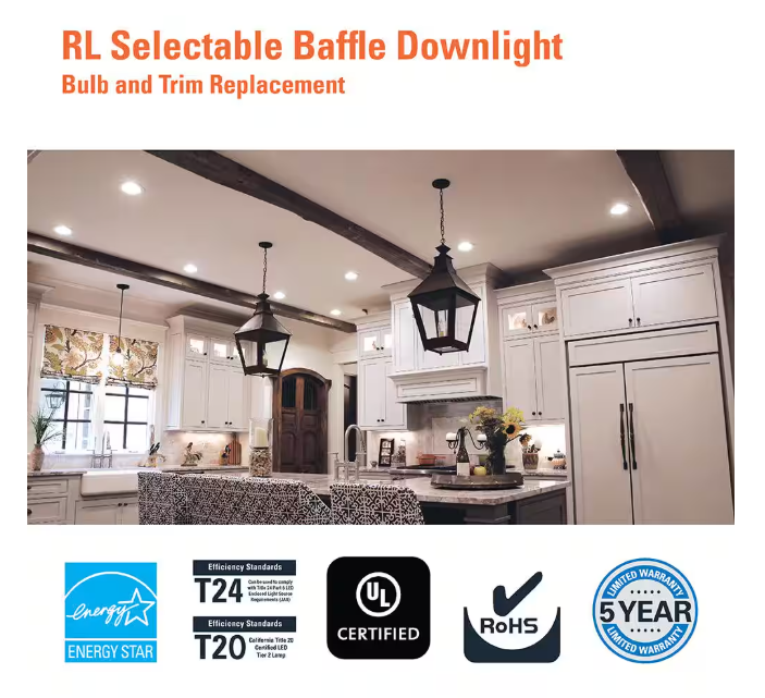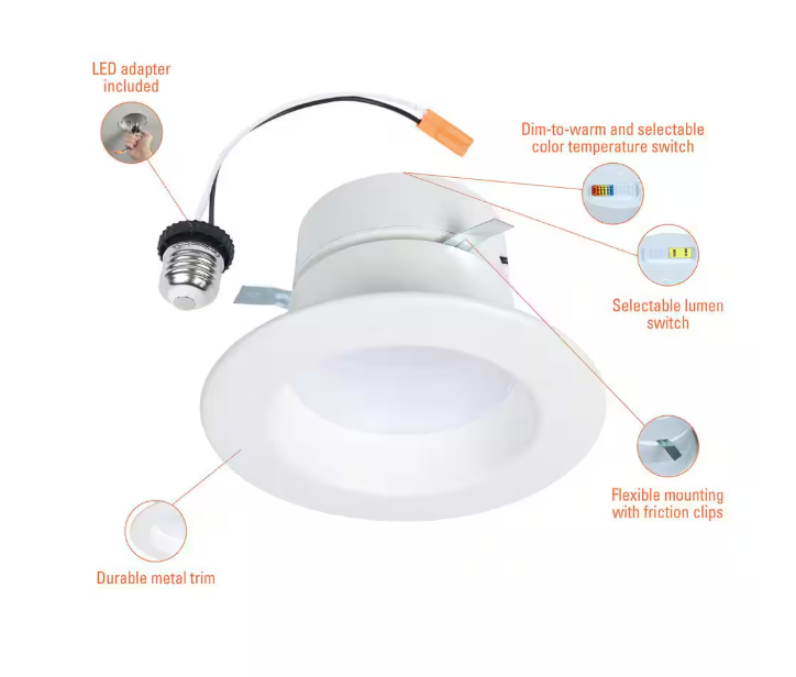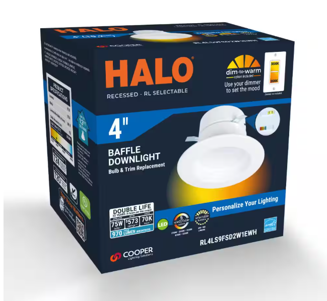 Pack of 36 - Tired of outdated, inefficient incandescent can lights? Want a simple upgrade that makes a noticeable difference? Switching to sleek LED is easier than ever. HALO RL LED Trims install in new or existing cans and provide versatile lighting customization options to suit any space, indoors or out.Not sure how much light you need or what hue will work best? These lights allow you to adjust the lumens and color temperature right from the fixture. Choose from 5 color temperatures from soft white to daylight (2700-5000K) or Dim-to-Warm which starts at bright white (3000K) and dims to candlelight (1800K).While contractors love the quality and reliability HALO delivers, you don't have to be a professional to install these downlights. The pre-installed torsion springs or Push-N-Twist clips hold the all-in-one LED Trim securely in place. Designed and tested in the USA, HALO has been a contractor-preferred brand for nearly 70 years and is North America's top-selling recessed lighting brand