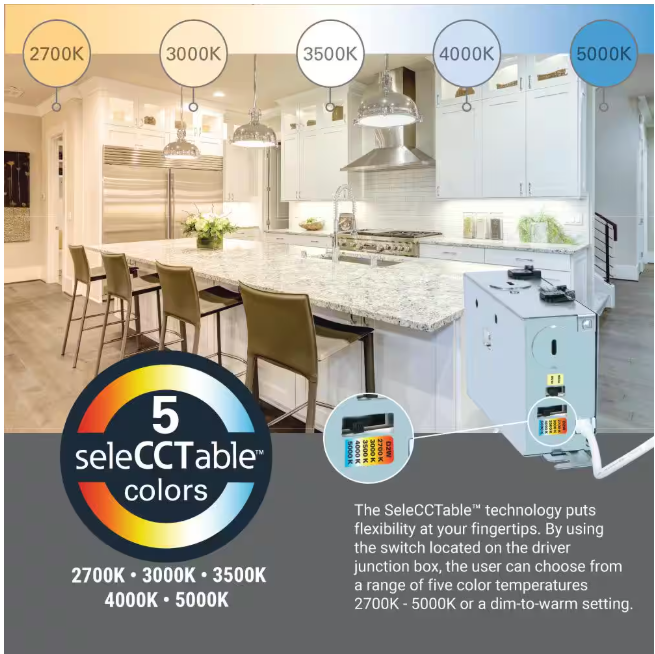- PICK YOUR PERFECT HUE: Select from 5 color temperatures, from soft white (2700K) to daylight (5000K), to set the mood, optimize functionality, and complement your home's finishes